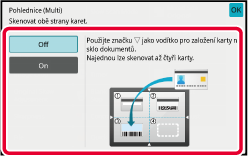 Způsob skenování se liší od skenování s funkcí multicrop. Zavřete automatický podavač dokumentů.Klepněte na zobrazení režimu a přepněte na úvodní obrazovku požadovaného režimu.