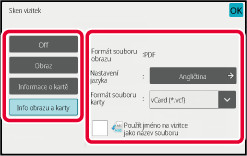 Když je zapnuto [Použít jméno na vizitce jako název souboru], jméno na skenované vizitce