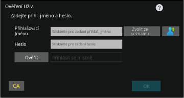 Když administrátor přístroje zaktivoval ověření uživatele,