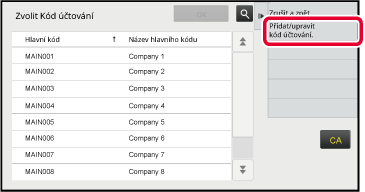 Když je zobrazeno okno pro zadání kódu účtování, klepněte na [Zvolit ze seznamu] hlavního kódu.