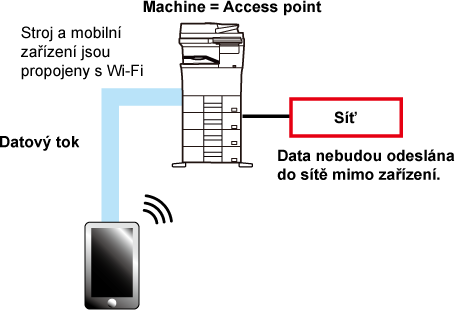 Přístroj lze nastavit jako přístupový bod a pro účely