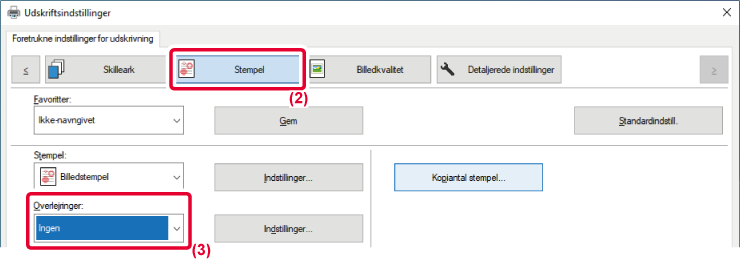 - Vælg [Billedstempel] fra "Stempel" og klik på [Indstillinger].