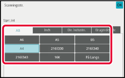 Kontroller at den angivne størrelse vises på skærmen for scanningsstørrelse.