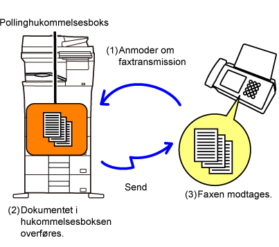 dokument, der faxes til den anden maskine, scannes til en pollinghukommelsesboks.