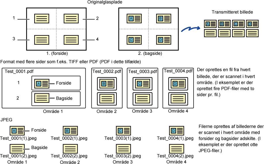 Ved scanning af originaler, der er opdelt i to sæt, scannes