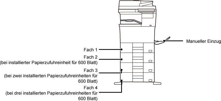 *3 bei drei installierten Papierzufuhreinheiten für 600 Blatt