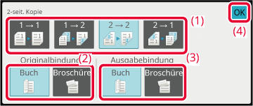 GRUNDSÄTZLICHE VORGEHENSWEISE BEIM KOPIERENWählen Sie den 2-seitige Kopien-Modus.