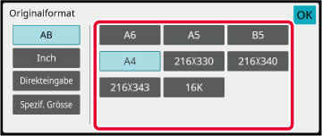 Um das Originalformat zu ändern, berühren Sie die Taste [Original]