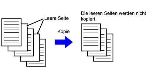 Funktion übersprungen, sodass nur bedruckte Seiten kopiert werden.
