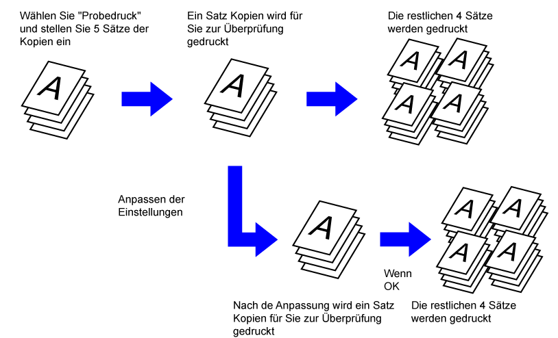 der angegebenen Kopienzahl ein Probedruck durchgeführt. Prüfen Sie das
