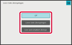 Berühren Sie eine der Tasten [Leere Seite überspringen] oder [Leer und schattiert überspr.].