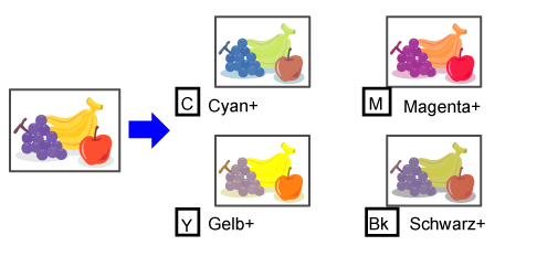 Sie die Dichte der Farben Geld, Magenta, Cyan und Schwarz in drei