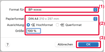 unter „Papiergröße" im Seiteneinstellungsfenster zum Drucken verwendet.