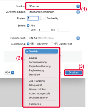 Wählen Sie im Menü [Ablage] die Option [Drucken].