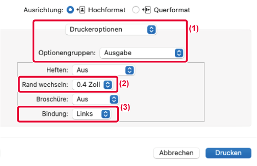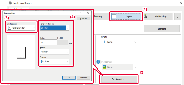 Druckbilds, um den linken, rechten oder oberen Blattrand zu verbreitern.