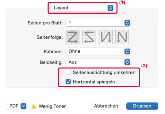 angezeigt wird.Mithilfe dieser Funktion wird das Druckbild