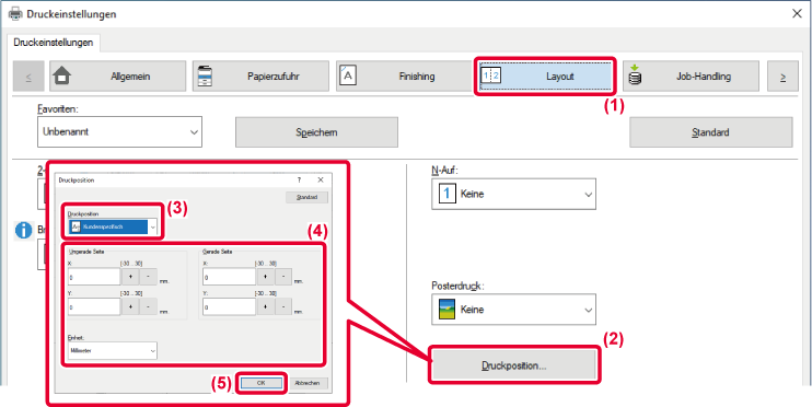 werden die Druckpositionen (Ränder) für gerade und ungerade Seitenzahlen