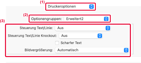 Sie können die Kanten von Text und Grafiken runder oder schärfer einstellen. Automatisch: Es wird eine optimale Bilderweiterung ausgeführt. Aus: Es findet keine Bilderweiterung statt. Schärfe: Die Bilderweiterung wird mit Schärfe angewandt. Weich: Die Bilderweiterung wird geringfügig angewandt. |