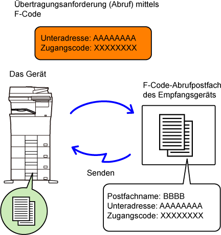 Ein Original, das über F-Code-Abrufkommunikation zum Gerät