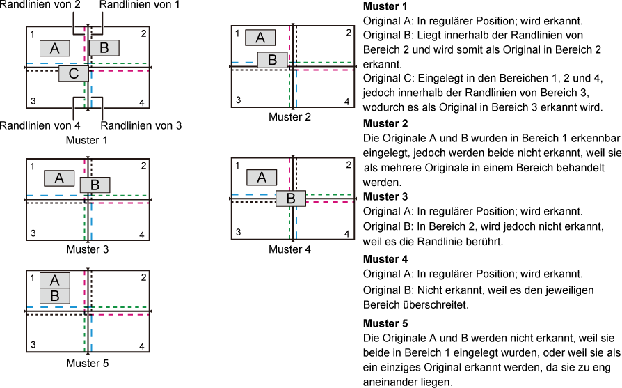 Originale, die auf das Vorlagenglas gelegt werden, zu einzelnen