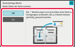 Legen Sie eine Karte mit der Vorderseite nach oben auf das Vorlagenglas und berühren Sie die Taste [Start], um die Rückseite zu scannen.