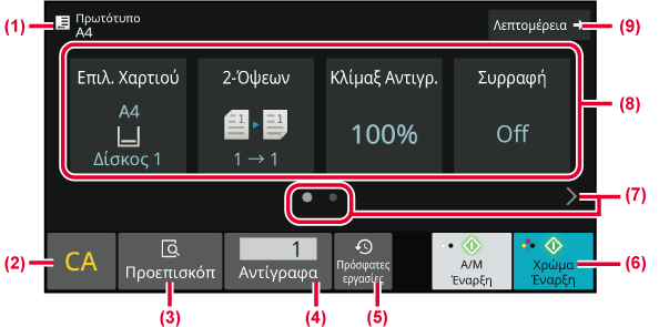 - Έναρξη ασπρόμαυρης ή έγχρωμης αντιγραφής.