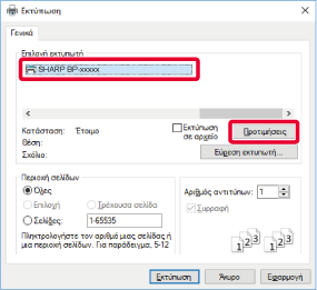 Το κουμπί που χρησιμοποιείται για να ανοίξει το παράθυρο ιδιοτήτων του προγράμματος οδήγησης εκτυπωτή (συνήθως [Ιδιότητα] ή [Προτιμήσεις]) ενδέχεται να διαφέρει ανάλογα με την εφαρμογή.