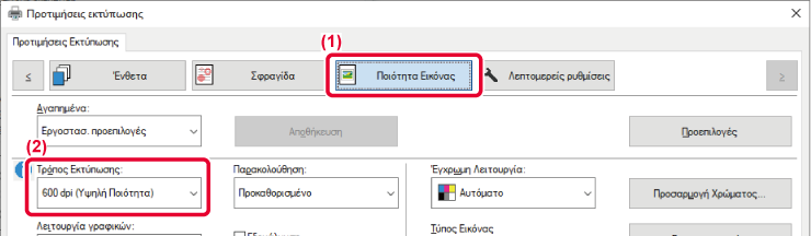 Για τον "Τρόπο εκτύπωσης" (ανάλυση) διατίθενται οι τρεις