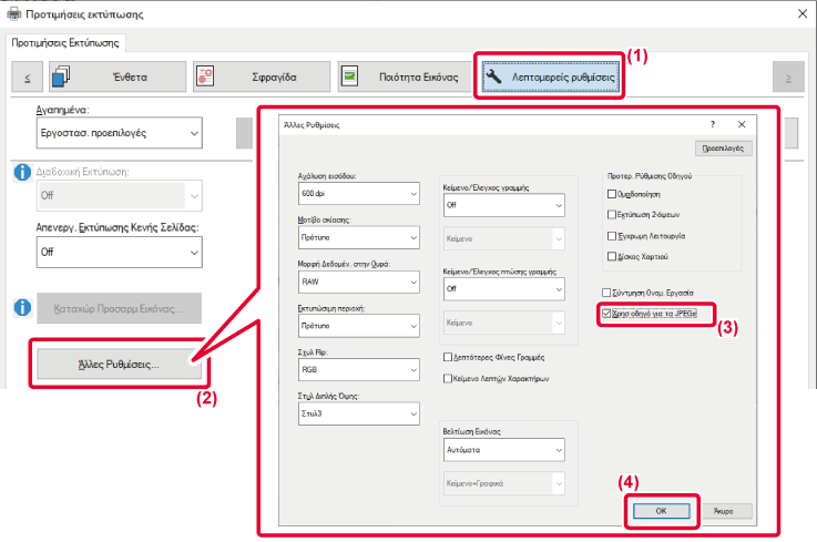 ΜΕΤΑΒΟΛΗ ΤΗΣ ΜΕΘΟΔΟΥ ΑΠΟΔΟΣΗΣ ΚΑΙ ΕΚΤΥΠΩΣΗ ΕΙΚΟΝΩΝ JPEG (ΧΡΗΣΗ ΟΔΗΓΟΥ
