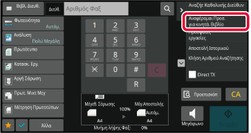 Στη βασική οθόνη ή στην οθόνη βιβλίου διευθύνσεων πατήστε στην επιλογή [Αναφέρομαι Προσ. για κινητά. Βιβλίο] του πίνακα λειτουργίας.