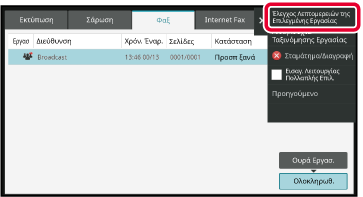 - Αν κάποια εργασία φαξ βρίσκεται σε εξέλιξη