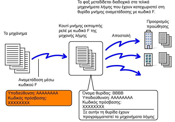 αποστολή φαξ σε θυρίδα μνήμης αναμετάδοσης μέσω κωδικού F προς κάποιο