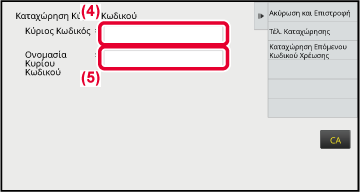 Όταν εμφανιστεί το παράθυρο εισαγωγής κωδικού χρέωσης, πατήστε το πλαίσιο [Κύριος Κωδικός] και εισαγάγετε τον κύριο κωδικό.