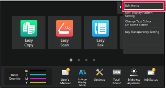 The settings are saved in the machine and applied.Multiple home screen layout patterns are