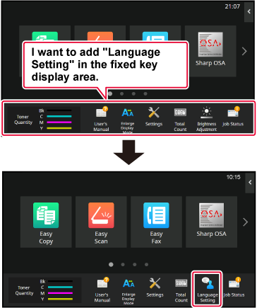 The settings are saved in the machine and applied.You can change the fixed keys. The fixed
