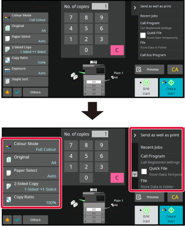 The settings are saved in the machine and applied.You can add shortcut keys to the home screen,