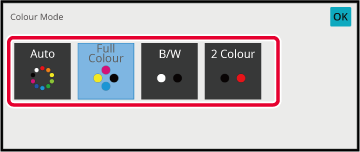After the settings are completed, tap [OK] key. Check that the specified colour mode is selected.