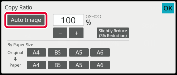 The reduction or enlargement ratio is automatically selected based on the original size and the selected paper size.
