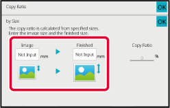 Tap the area of image size and output size, and enter the sizes using the numeric keys.