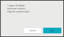 The number that is displayed is the number of scanned original sheets, not the number of scanned original pages. For example, when 2-sided copying is performed using one original, the number "1" will appear to indicate that one original sheet was scanned, not "2" to indicate the front-side page and the reverse side page.