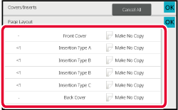 The Insertion Type B to Type H settings are the same as the Insertion Type A settings.Enter the number of the page you want to insert a sheet into using numeric keys, and then tap the [Enter] key.
