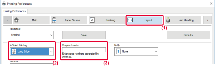 TWO-SIDED PRINTING WITH SPECIFIC PAGES PRINTED ON THE FRONT SIDE (CHAPTER INSERTS)