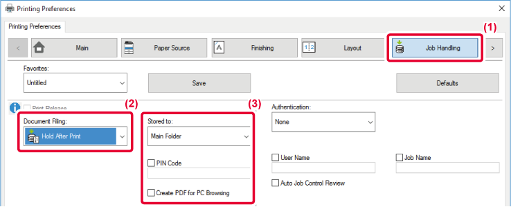that can be set on the [Job Handling] tab can also be set on the [Main]