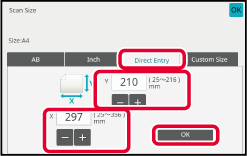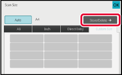 Tap the [Scan Size] key and tap the [Custom Size] tab.