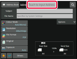 On the base screen of Internet Fax, tap [Text Box] to display the screen you want to select the address type. Tap either the [Internet Fax] or [Direct SMTP] key.