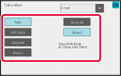 or Data Entry) to set the colour mode for each mode.Tap the [Greyscale] or [Mono2] key to set the B/W mode for automatic colour selection.
