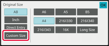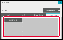 Tap the [Scan Size] key and tap the [Custom Size] tab.