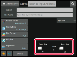 EASY MODEAfter tapping the [Original] key, tap the [Scan Size] key.