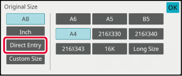 After tapping the "Scan Size" key, tap the [Direct Entry] key.