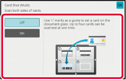 Place a card face up on the document glass, and tap the [Start] key to scan the reverse side.